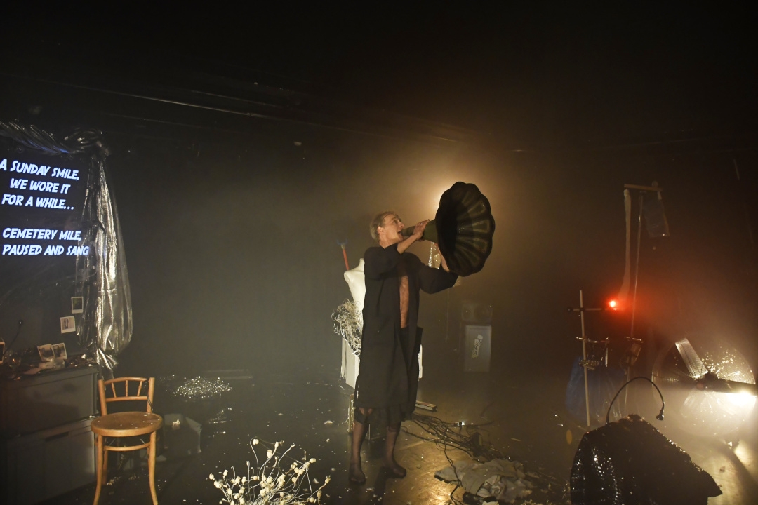 Für «Das Luftschiff» nach einem Text von X Schneeberger hat Astride Schlaefli mit ihrem Team und mit Michael Wolf in der Hauptrolle rund um die eigensinnige Dragqueen eine fantastische Theatermaschine zwischen Musikspieldose und Dancefloor geschaffen – eine auch humorvolle und menschmal poetische Erfahrung vom Anderssein in Zeiten der Gefahr.