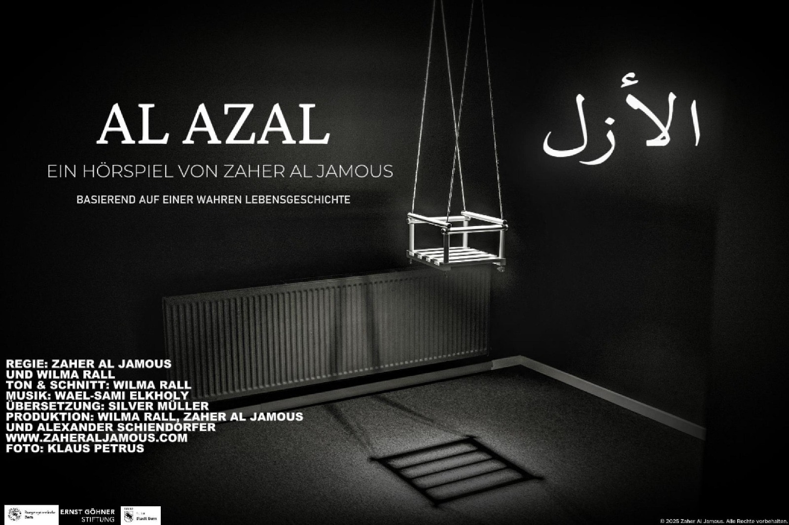 Das Hörspiel Al Azal von Zaher Al Jamous basiert auf einer wahren Lebensgeschichte. Im Befragungsraum des Staatssekretariats für Migration (SEM) sitzt die Protagonistin Azal. Weit öffnen sich bei der Befragung die Türen zu ihren Erinnerungen. Sie trägt ihr Schweigen wie ein Schild und ihren Schmerz wie einen Schatten. Nach vielen Jahren entscheidet sie sich zu sprechen und ihre Geschichte zu erzählen. Sie nimmt uns mit auf die emotionale Reise in den Befragungsraum, wo sie mit voller Wucht in ihr Leben in Syrien und vergangene Traumata zurückversetzt wird.